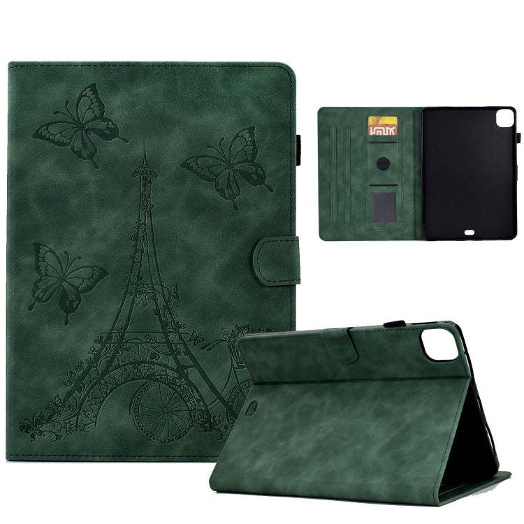 For iPad Pro 11 2024 Tower Embossed Leather Smart Tablet Case(Green)
