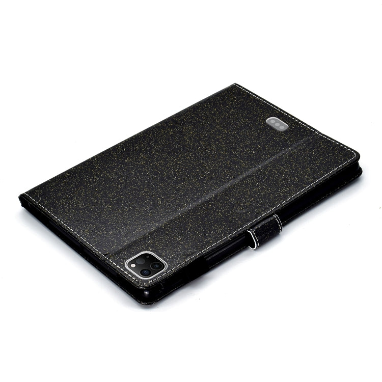 For iPad Pro 11 inch 2020 Glitter Left and Right Flat Leather Tablet Case with Sleep Function & Card Slot & Buckle Anti-skid Strip and Bracket(Black)