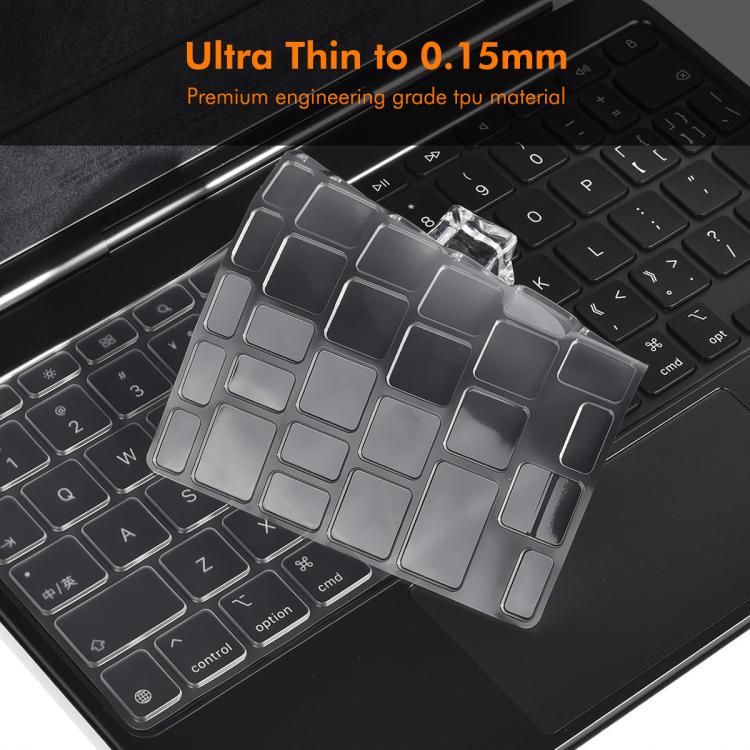 5. This TPU keyboard film which is ultra-thin and high transparency fits the keyboard closely and has no influence on typing.