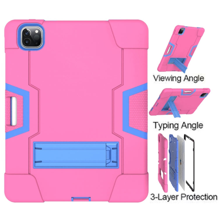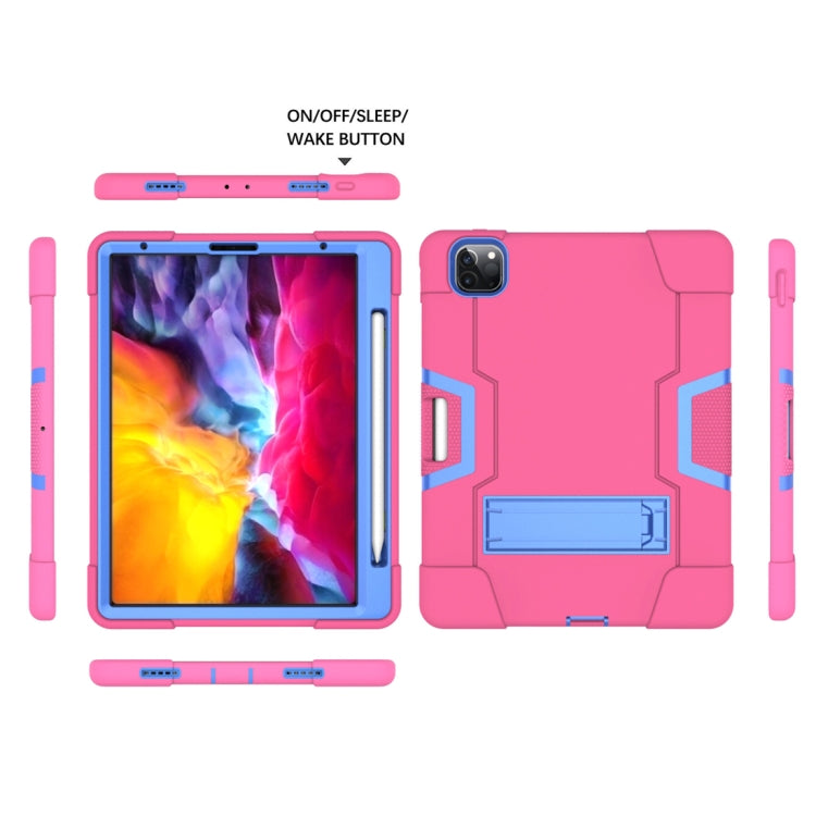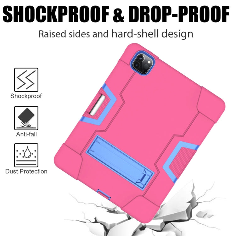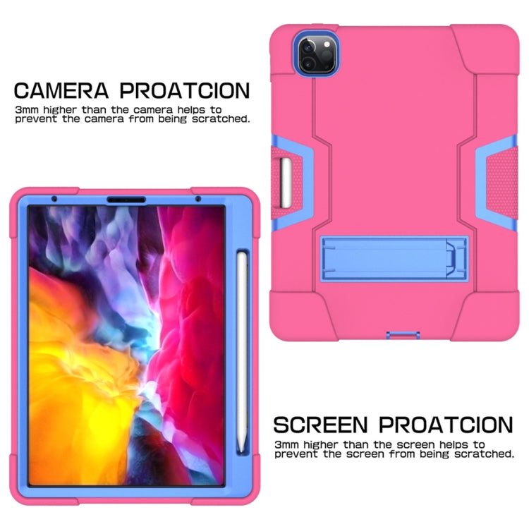 For iPad Pro 12.9 2021 / 2020 / 2019 Contrast Color Silicone + PC Protective Tablet Case with Holder(Rose Red + Blue)