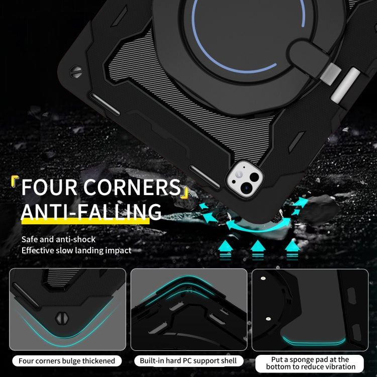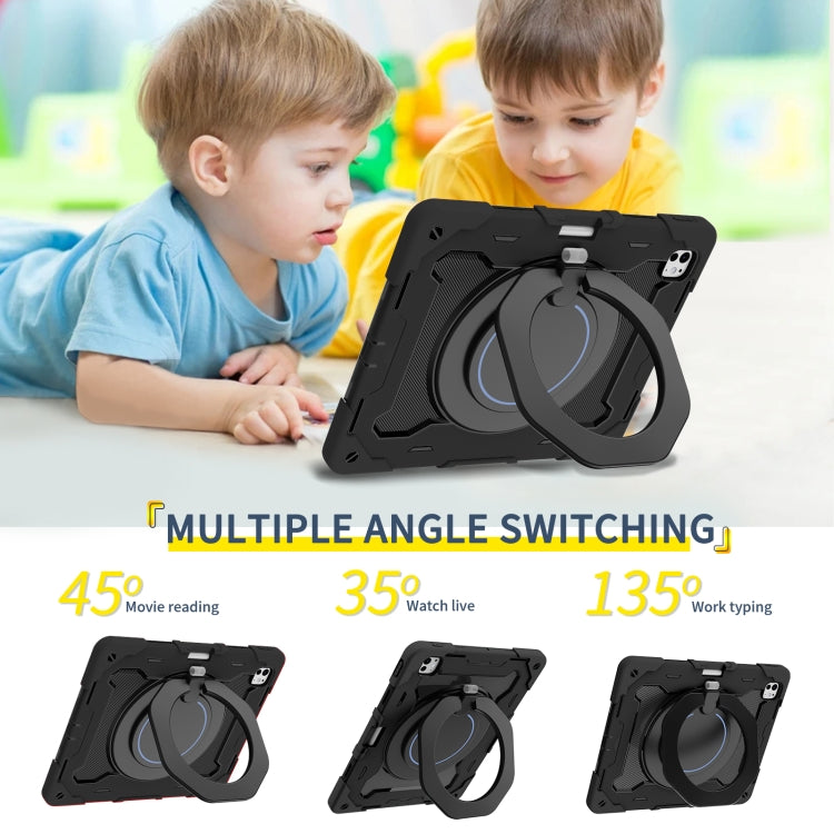 For iPad Pro 13 2024 Armor Portable Rotating Ring Holder Silicone Tablet Case with Pen Slot(Black)