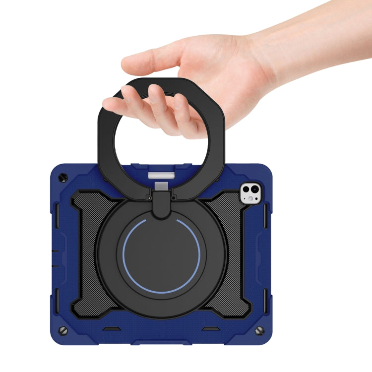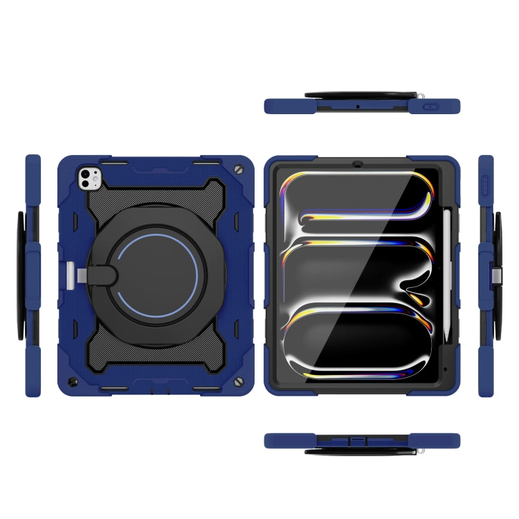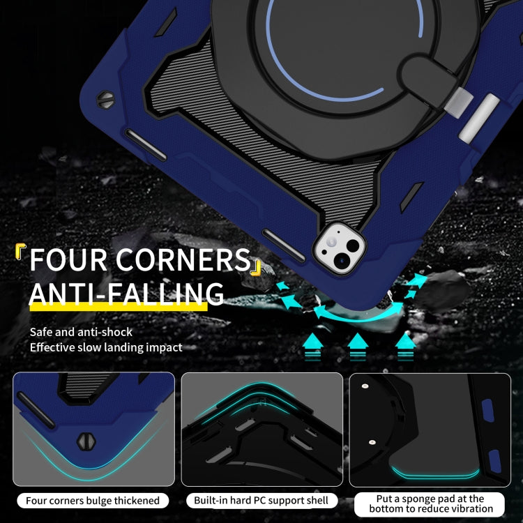 For iPad Pro 13 2024 Armor Portable Rotating Ring Holder Silicone Tablet Case with Pen Slot(Navy Blue)