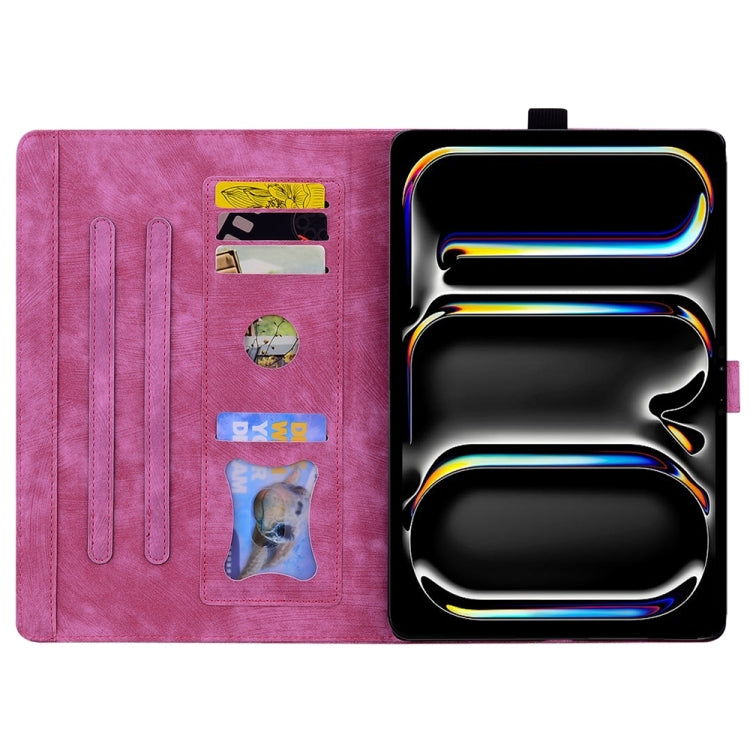 For iPad Pro 13 2024 Cartoon Sakura Cat Embossed Smart Leather Tablet Case(Rose Red)