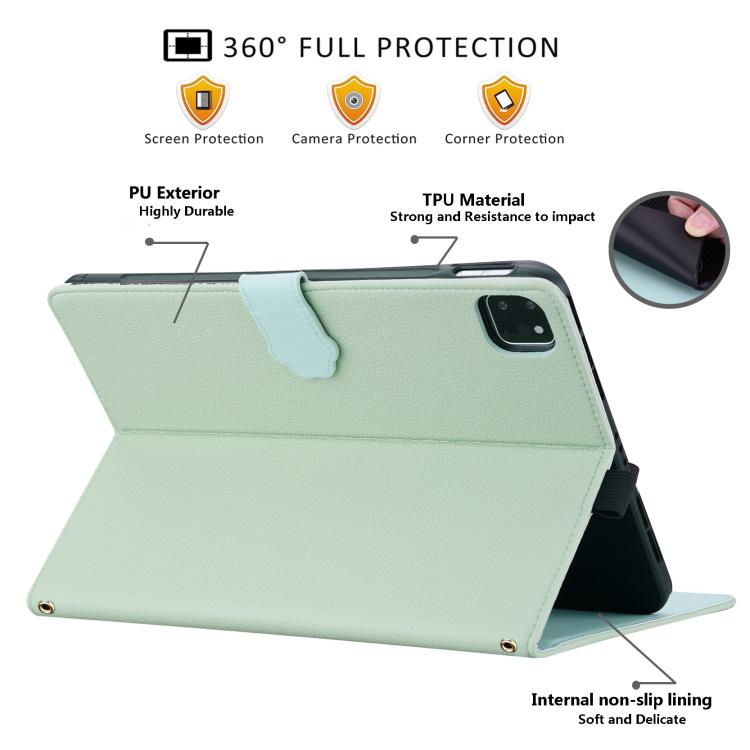 For iPad Pro 13 2024 Cat Skin-feel Litchi Leather Smart Tablet Case(Green)