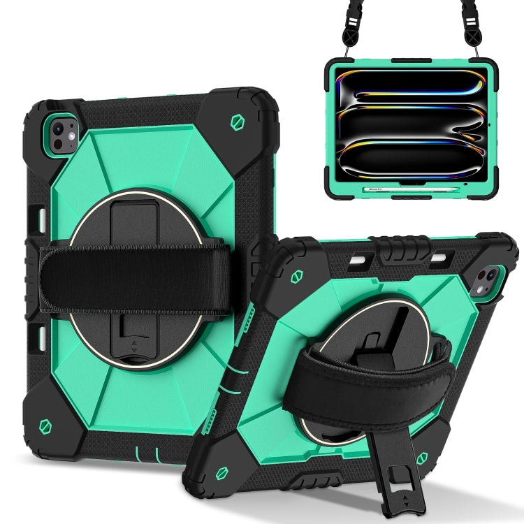 For iPad Pro 13 2024 Contrast Color Robot Silicone Hybrid PC Tablet Case(Black Mint Green)