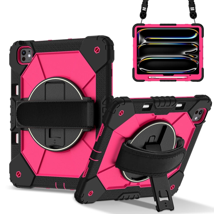 For iPad Pro 13 2024 Contrast Color Robot Silicone Hybrid PC Tablet Case(Black Rose Red)