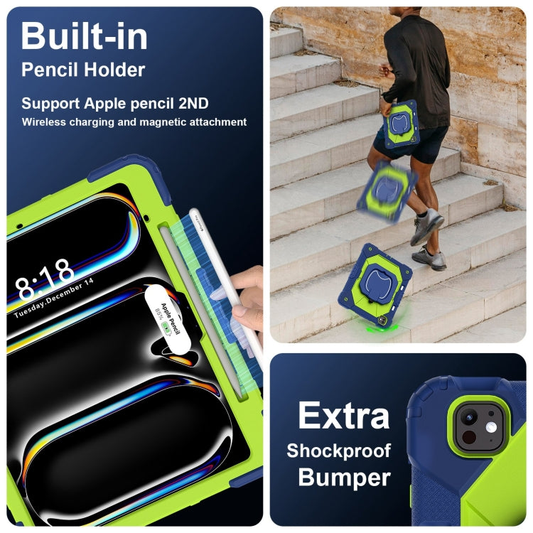 For iPad Pro 13 2024 Contrast Color Robot Silicone Hybrid PC Tablet Case(Navy Yellow Green)
