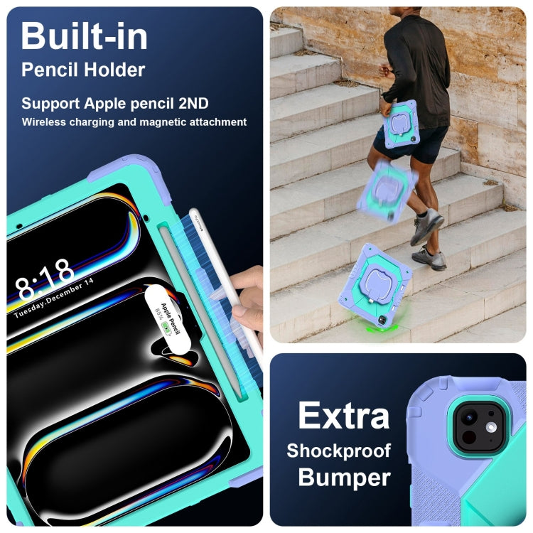 For iPad Pro 13 2024 Contrast Color Robot Silicone Hybrid PC Tablet Case(Purple Mint Green)