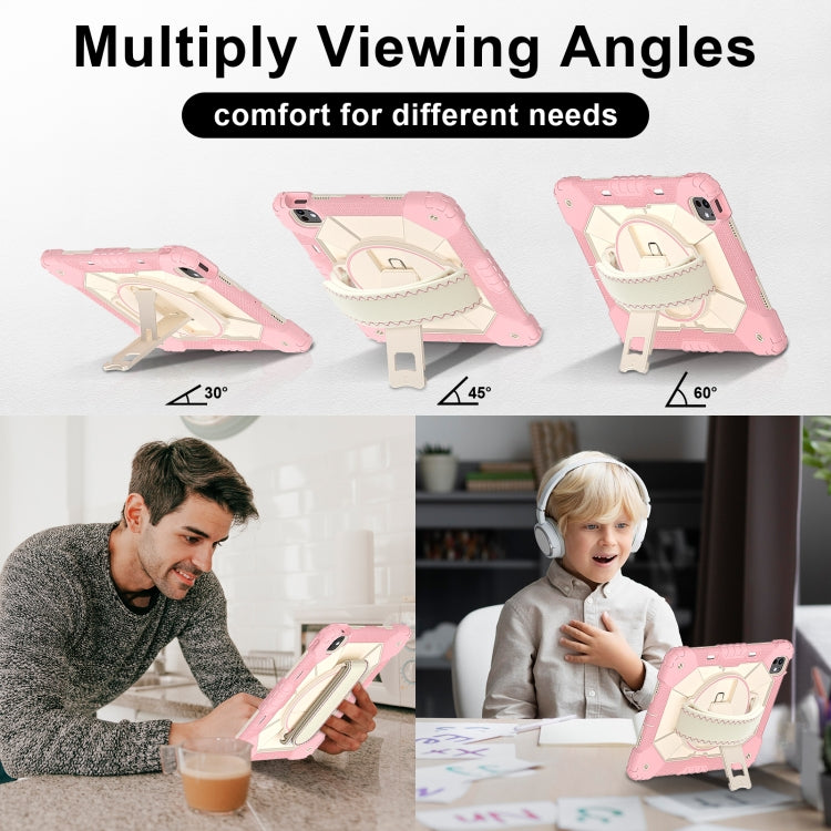For iPad Pro 13 2024 Contrast Color Robot Silicone Hybrid PC Tablet Case(Rose Gold Beige)