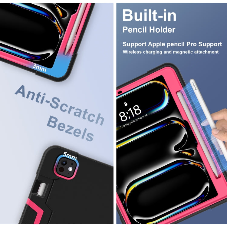 For iPad Pro 13 2024 Contrast Color Silicone Acrylic PC Tablet Case with Holder(Black Rose Red)