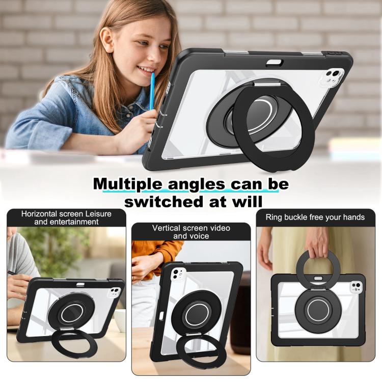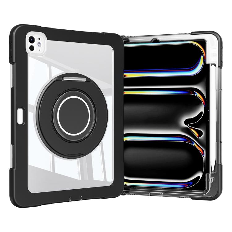 For iPad Pro 13 2024 Crystal Armor PC Hybrid TPU Tablet Case with Pen Slot(Black)