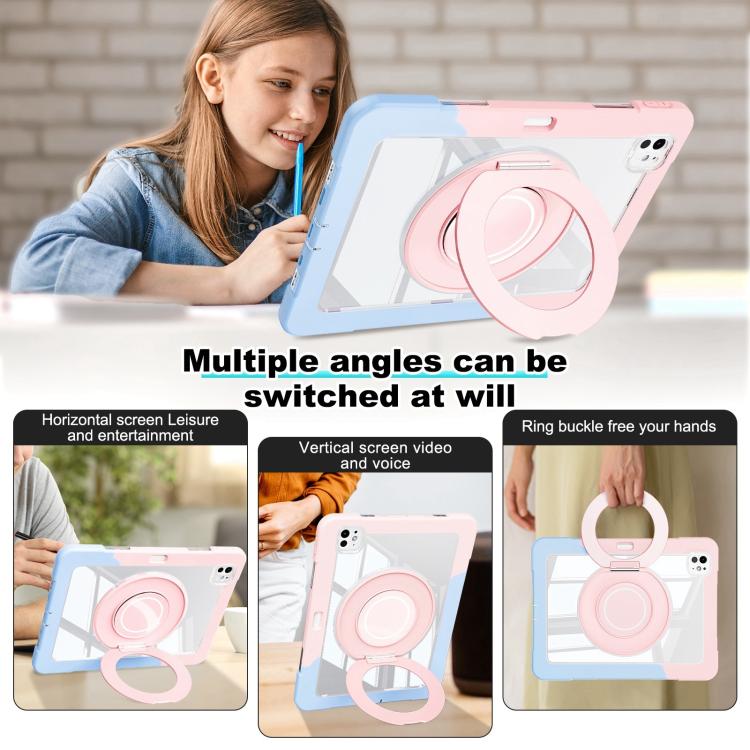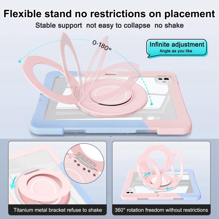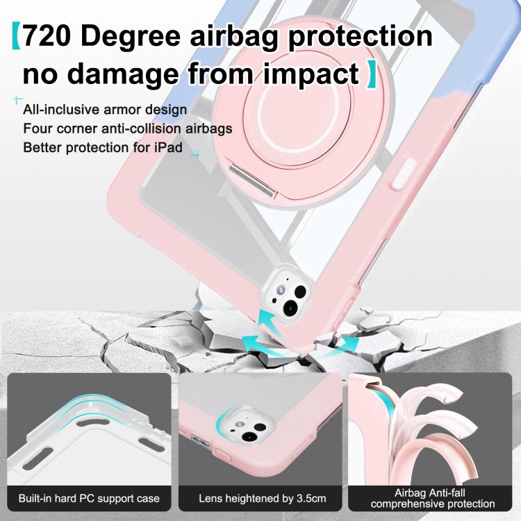 For iPad Pro 13 2024 Crystal Armor PC Hybrid TPU Tablet Case with Pen Slot(Blue Pink)