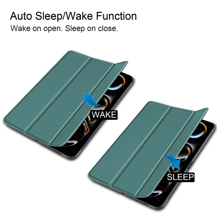 For iPad Pro 13 2024 Custer Pure Color 3-Fold Holder Smart Leather Tablet Case(Dark Green)