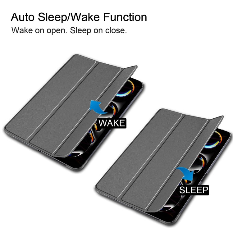 For iPad Pro 13 2024 Custer Pure Color 3-Fold Holder Smart Leather Tablet Case(Grey)