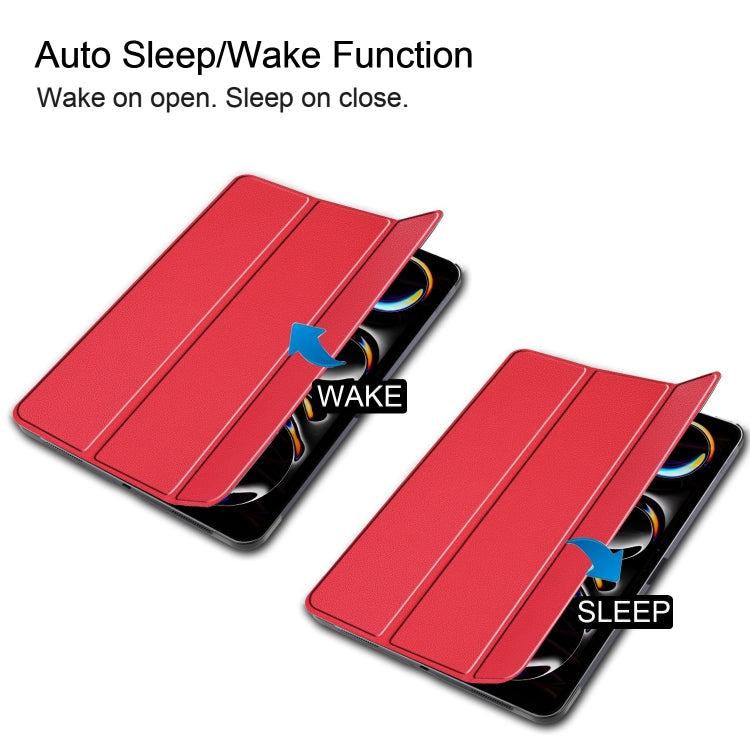 For iPad Pro 13 2024 Custer Pure Color 3-Fold Holder Smart Leather Tablet Case(Red)