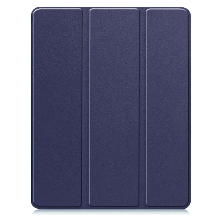 For iPad Pro 13 2024 Custer TPU Pure Color 3-Fold Holder Smart Leather Tablet Case with Pen Tray(Dark Blue)