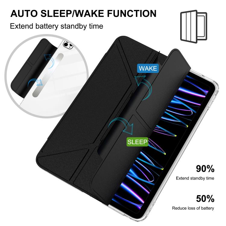 For iPad Pro 13 2024 Detachable Backshell Folding Holder Smart Tablet Leather Case(Black)