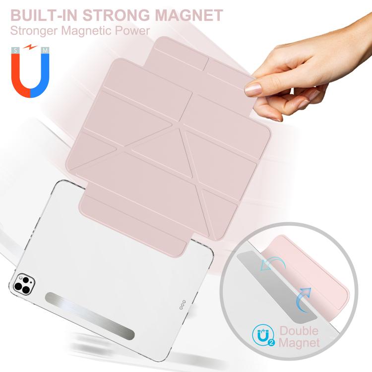 For iPad Pro 13 2024 Detachable Backshell Folding Holder Smart Tablet Leather Case(Pink)