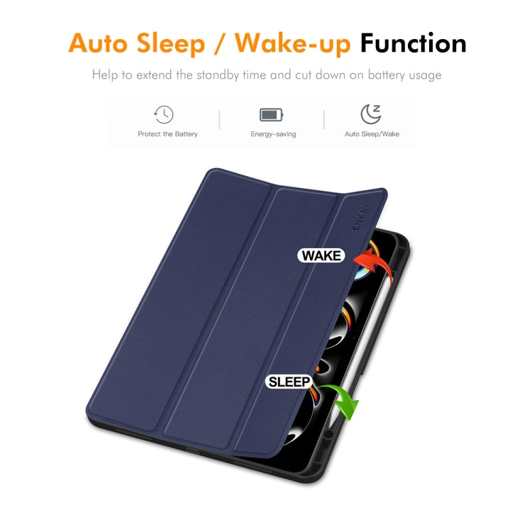 For iPad Pro 13 2024 ENKAY Tri-fold Custer Texture TPU Leather Smart Tablet Case with Pen Slot(Grey)