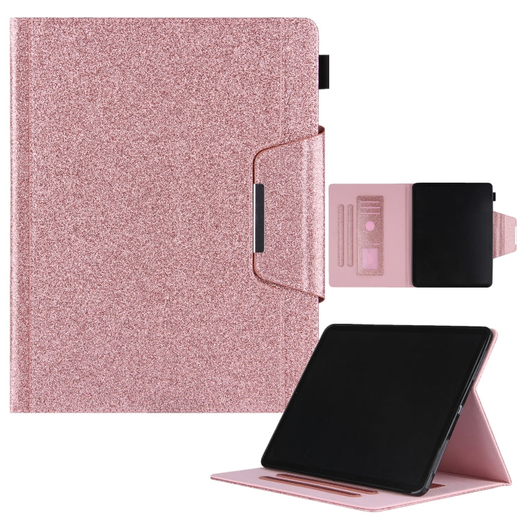 For iPad Pro 13 2024 Glitter Metal Buckle Leather Smart Tablet Case(Rose Gold)