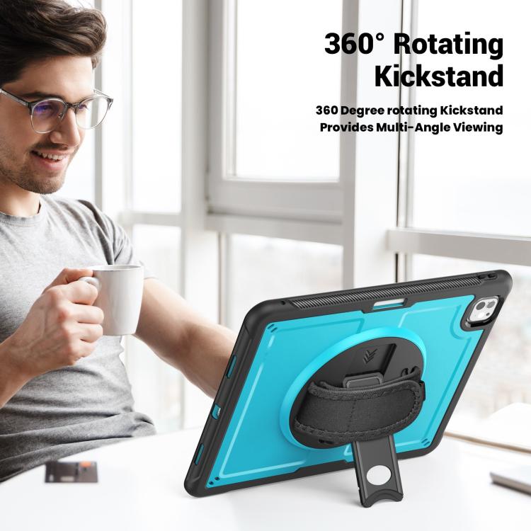 For iPad Pro 13 2024 Honeycomb Hand Grip Turntable Stand Tablet Case(Light Blue)