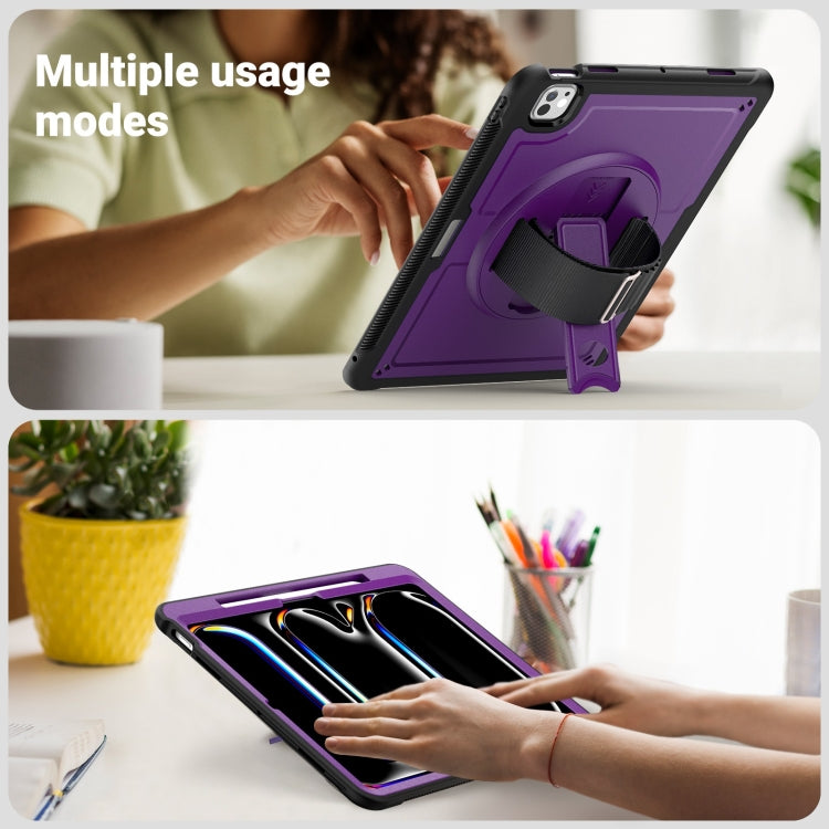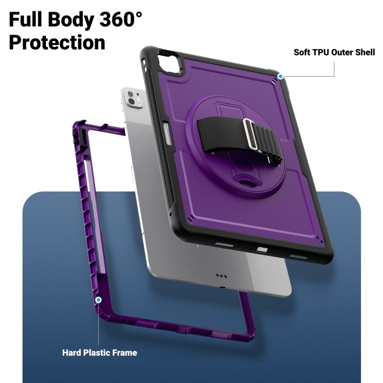 For iPad Pro 13 2024 Honeycomb Hand Grip Turntable Stand Tablet Case(Purple)