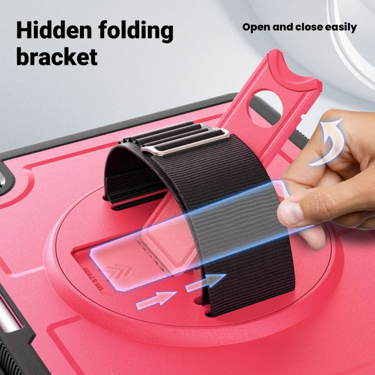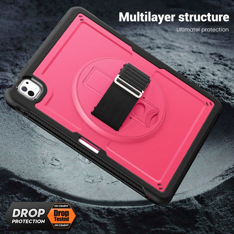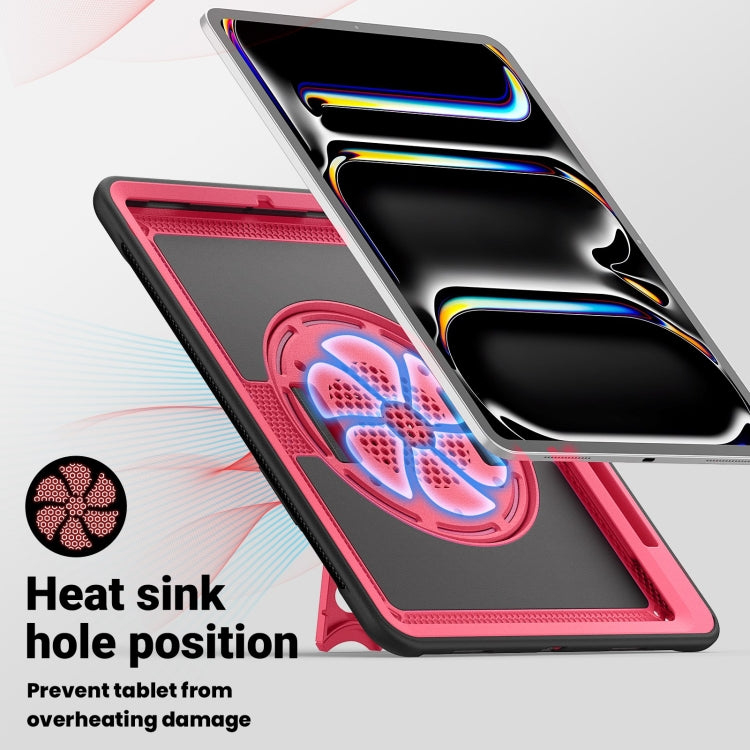 For iPad Pro 13 2024 Honeycomb Hand Grip Turntable Stand Tablet Case(Rose Red)