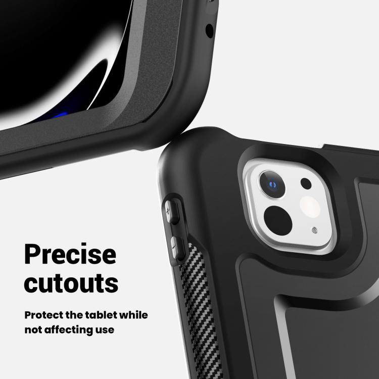 For iPad Pro 13 2024 Honeycomb Hybrid Tablet Case with Handle Holder & Strap(Black)
