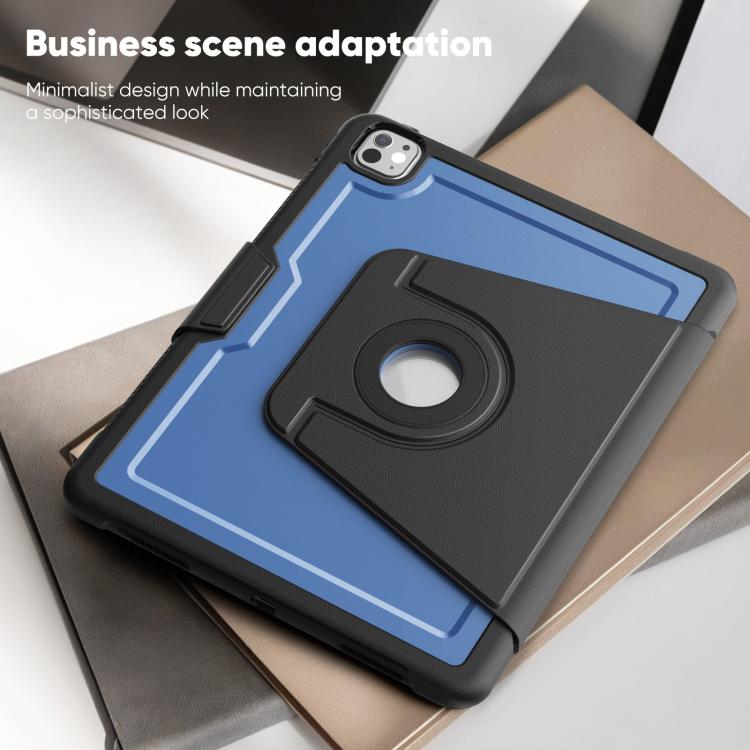 For iPad Pro 13 2024 Honeycomb Magnetic Rotation Holder Leather Smart Tablet Case(Blue)
