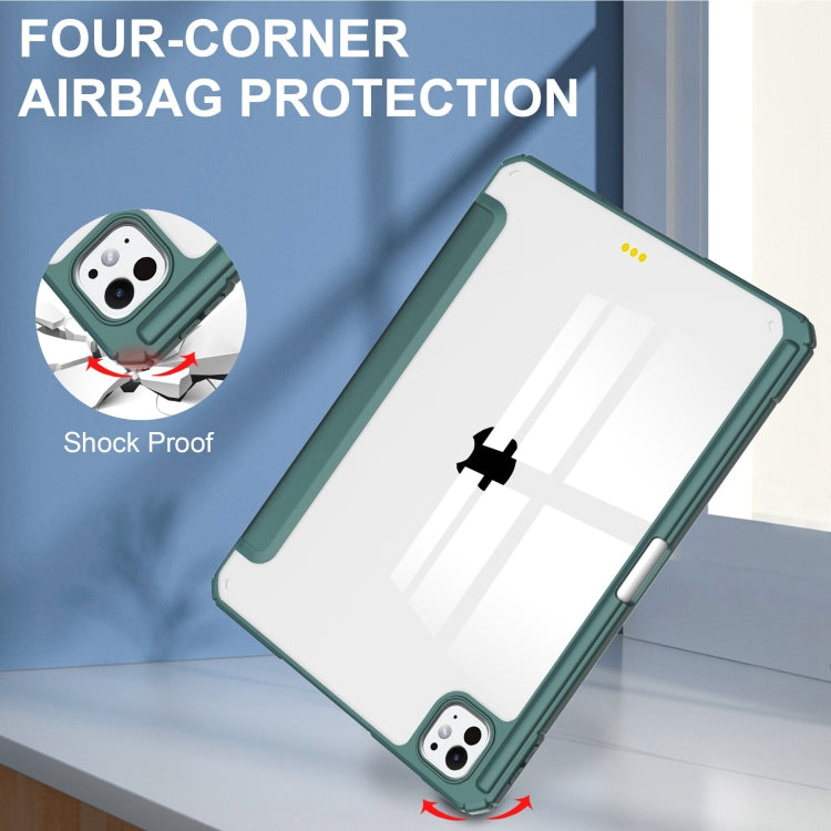 For iPad Pro 13 2024 Pure Color 3-fold Clear TPU Smart Leather Tablet Case(Dark Green)