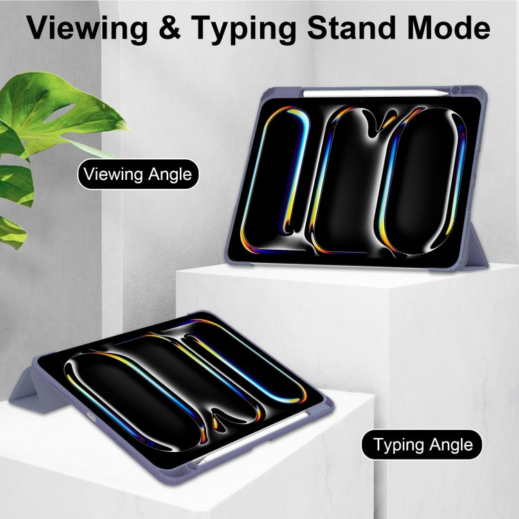 For iPad Pro 13 2024 Pure Color 3-fold Clear TPU Smart Leather Tablet Case(Lavender)