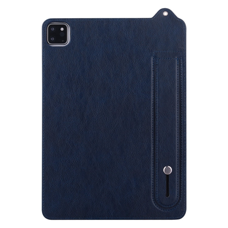 For iPad Pro 13 2024 TPU Leather Back Tablet Case with Wristband(Dark Blue)