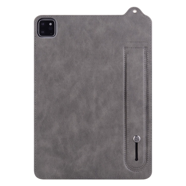 For iPad Pro 13 2024 TPU Leather Back Tablet Case with Wristband(Grey)