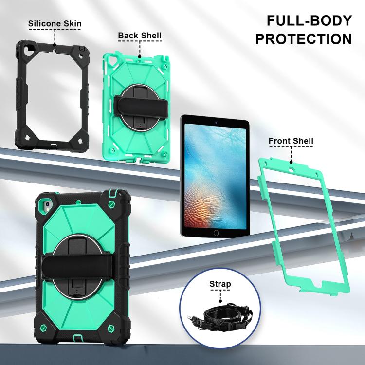 For iPad Pro 9.7 / 9.7 2018 / 2017 Contrast Color Robot Silicone Hybrid PC Tablet Case(Black Mint Green)
