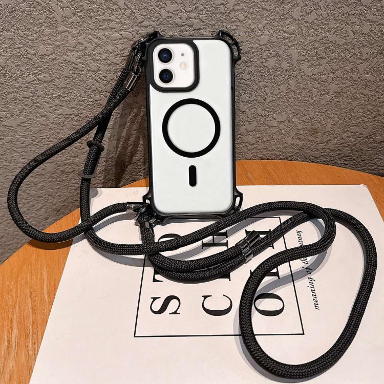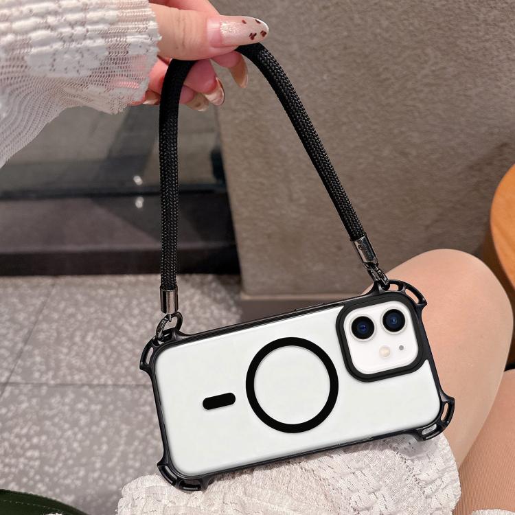 For iPhone 11 Drone-Style Four-Corner Shockproof Magnetic Acrylic Phone Case with Long and Short Lanyard(Black)