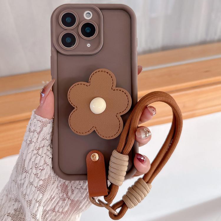 For iPhone 11 Pro Floral Holder TPU Phone Case with PU Buckle Lanyard(Coffee)