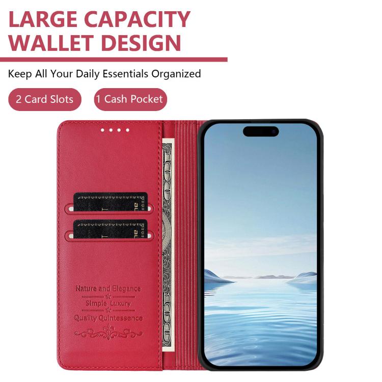 For iPhone 11 Pro Max Cute Cats Embossed Magnetic RFID Vegan Leather Phone Case(Red)