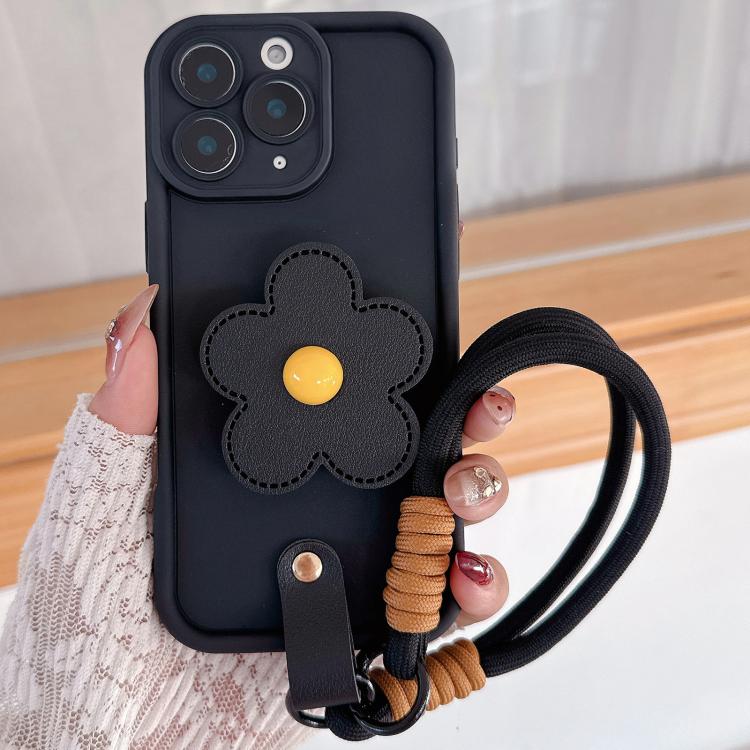 For iPhone 11 Pro Max Floral Holder TPU Phone Case with PU Buckle Lanyard(Black)
