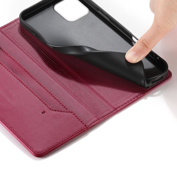 For iPhone 11 Pro Stitched Line Magnetic RFID Vegan Leather Phone Case(Wine Red)