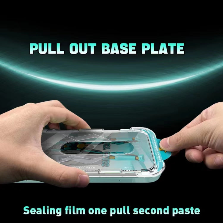 4. Press the center of the glass film, the adhesive part will spread out smoothly.