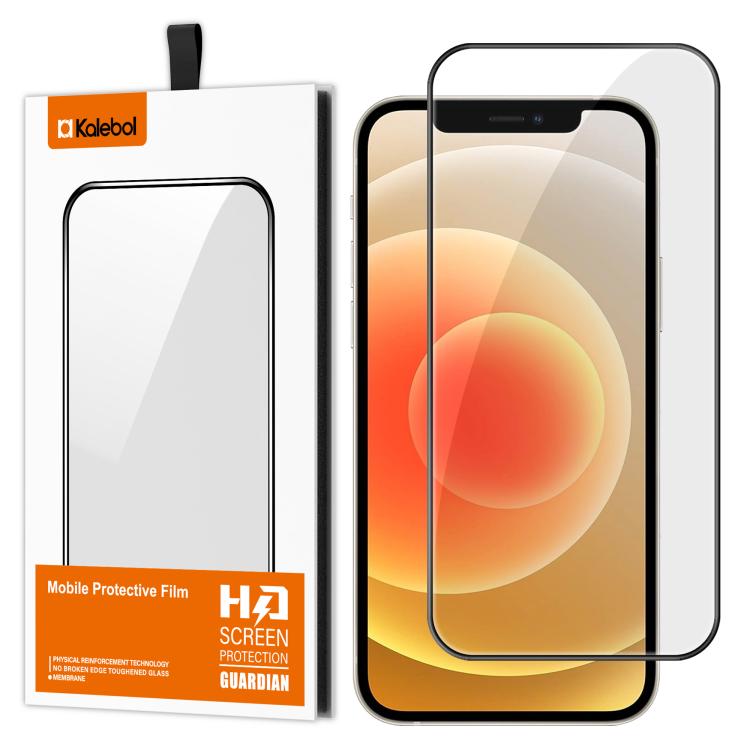 For iPhone 12 Kalebol High-Aluminum Screen-Printed Full-Coverage Anti-Fingerprint Black-Bordered HD Tempered Glass Film