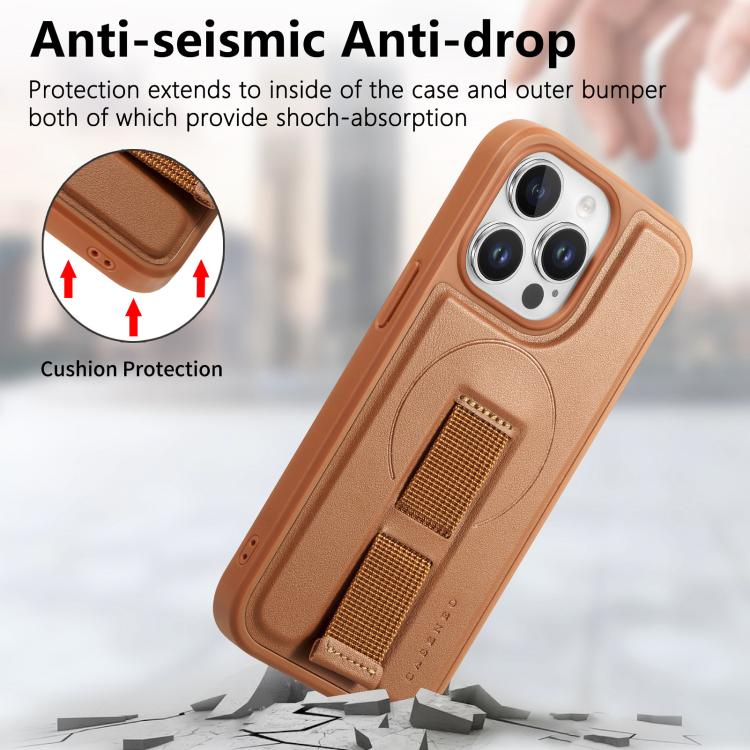 For iPhone 13 Pro CaseNeo Finger Grip Wristband MagSafe Back Phone Case(Brown)
