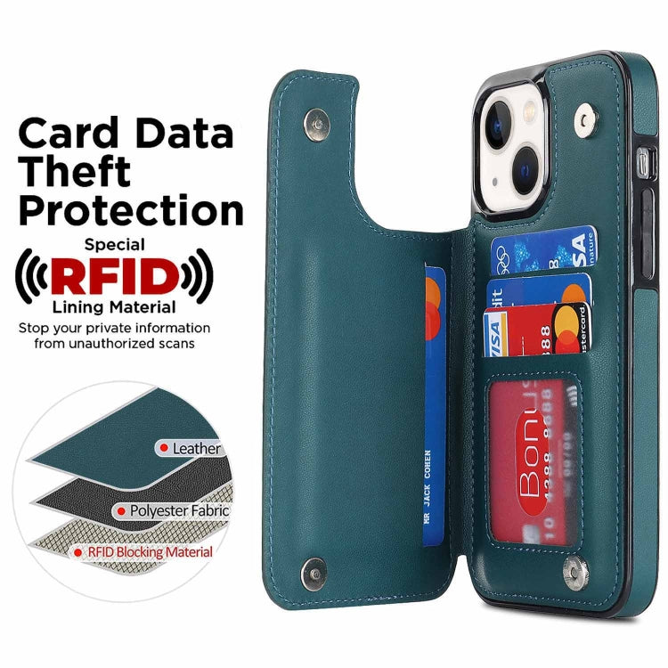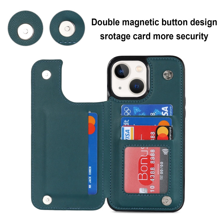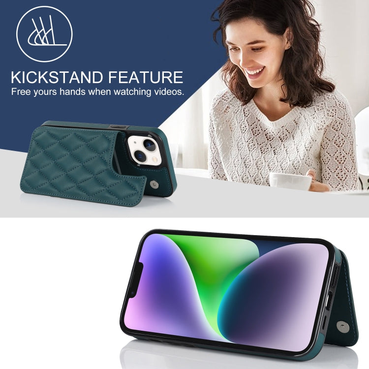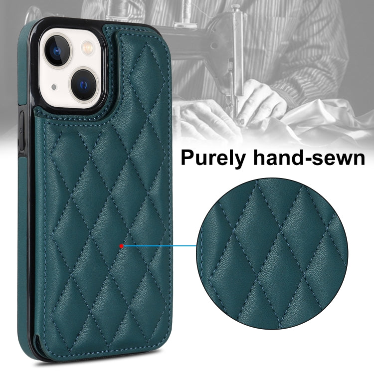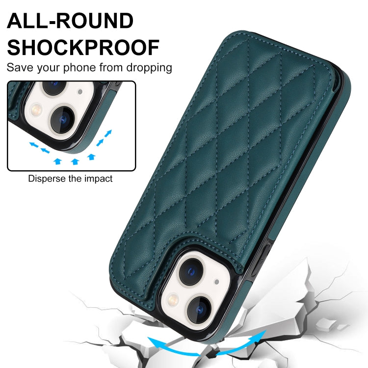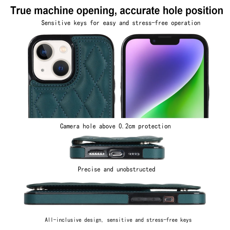 For iPhone 14 Plus Double Buckle Rhombic PU Leather Phone Case(Green)