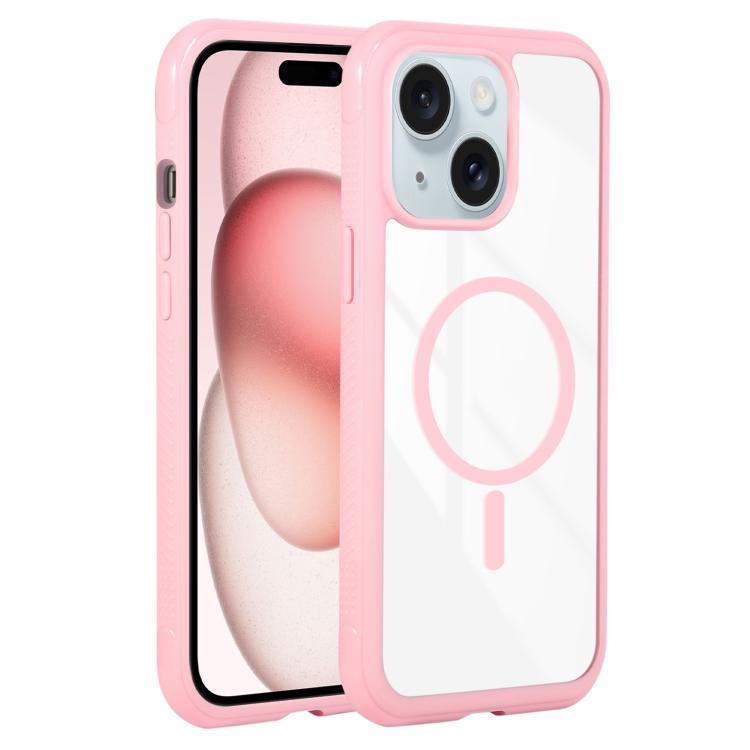 For iPhone 15 / 14 / 13 Solid Color Edge Transparency MagSafe Magnetic Phone Case(Pink)