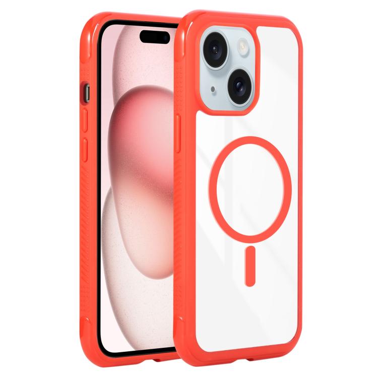 For iPhone 15 / 14 / 13 Solid Color Edge Transparency MagSafe Magnetic Phone Case(Red)