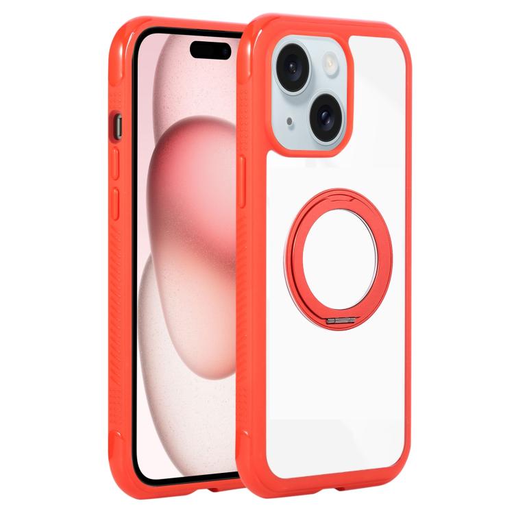 For iPhone 15 / 14 / 13 Solid Color Edge Transparency Rotation Holder MagSafe Phone Case(Red)