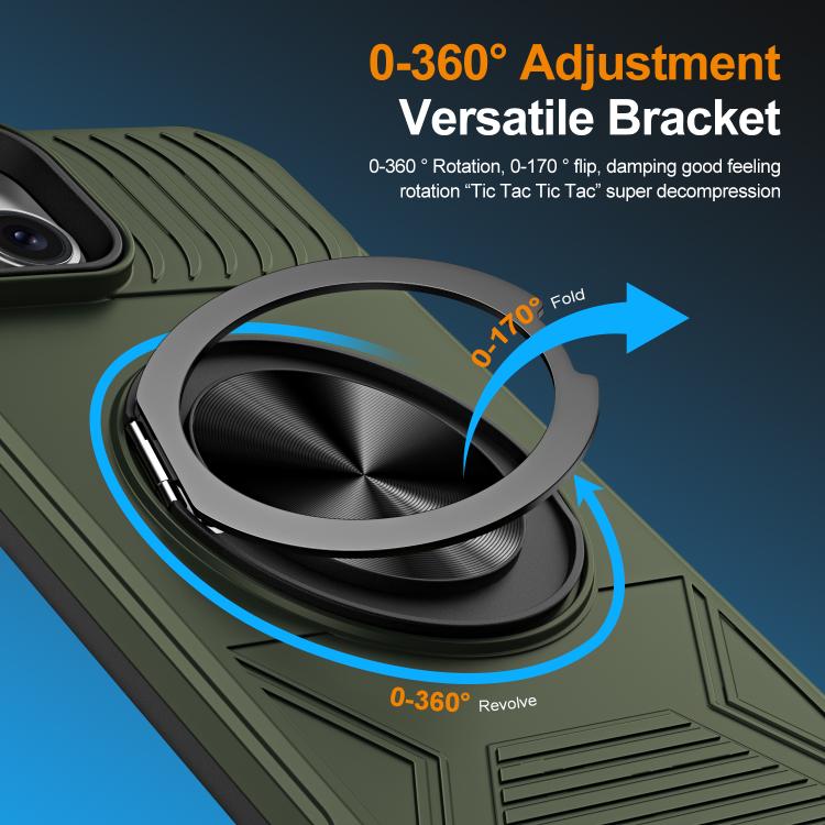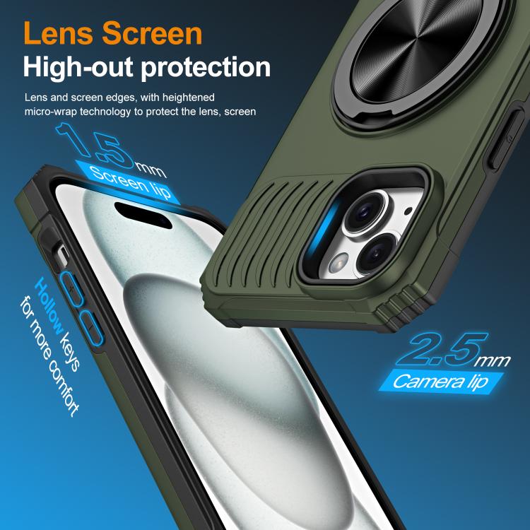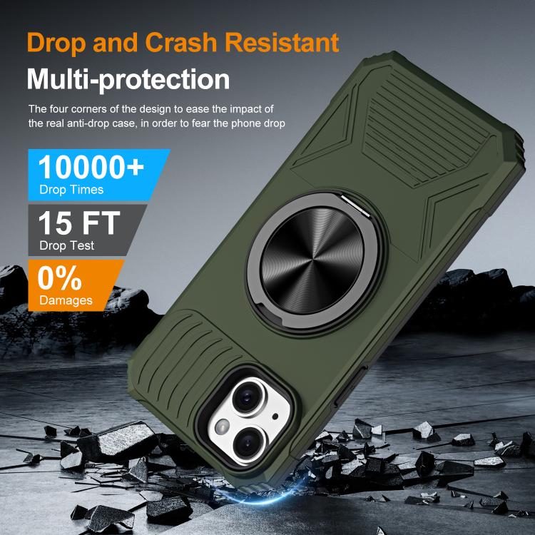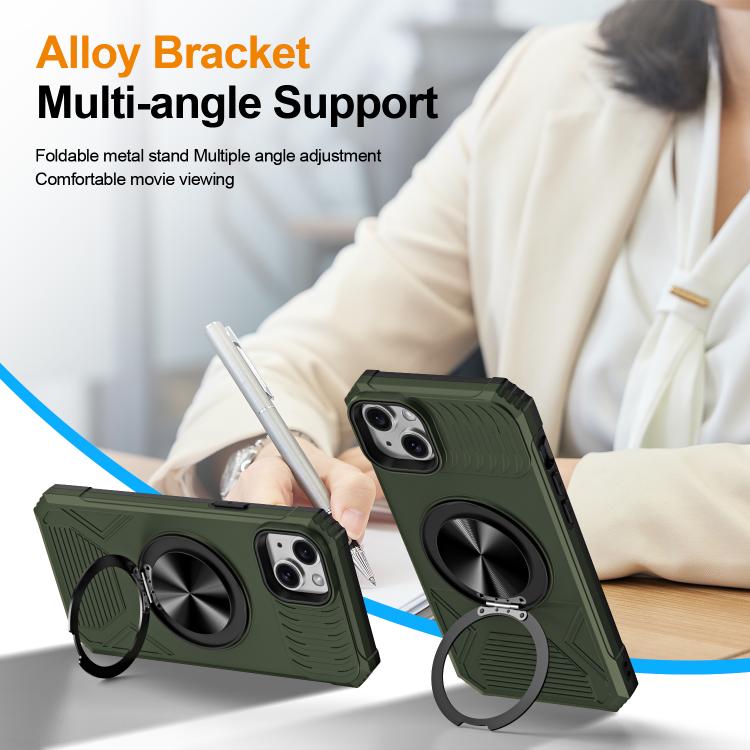 For iPhone 15 Alloy Rotating Holder MagSafe Shockproof Phone Case(Army Green)