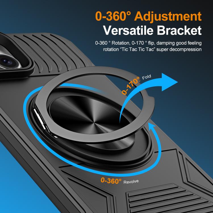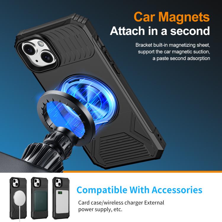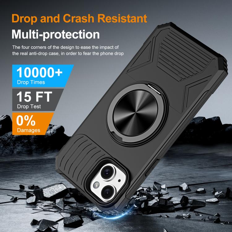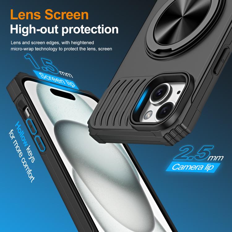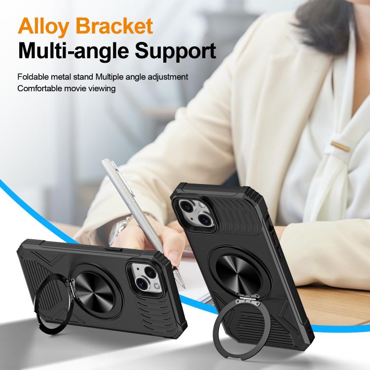 For iPhone 15 Alloy Rotating Holder MagSafe Shockproof Phone Case(Black)