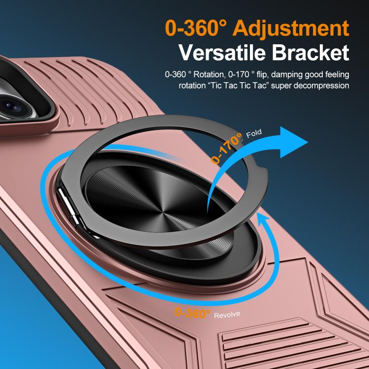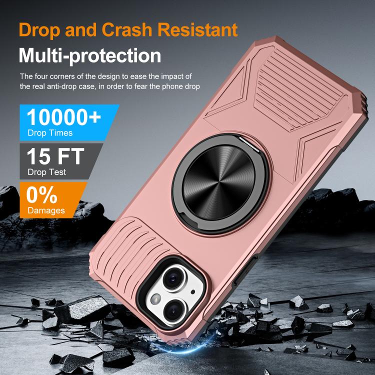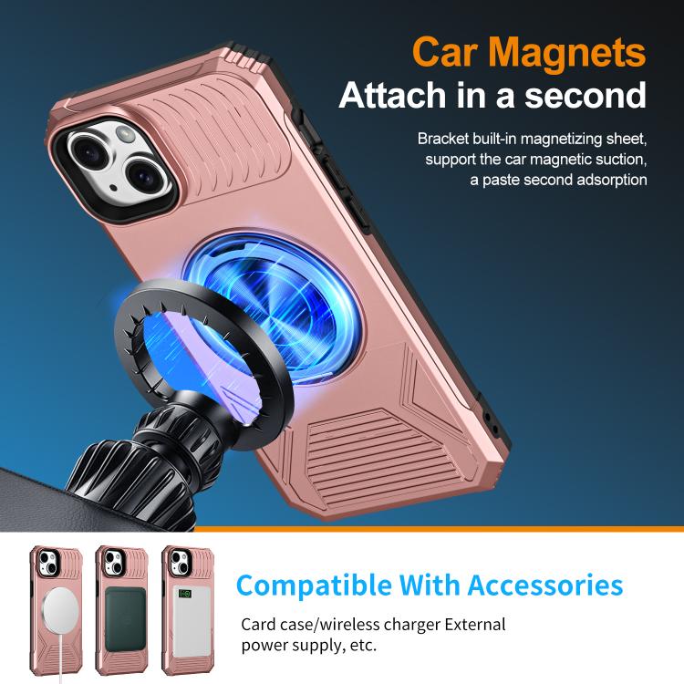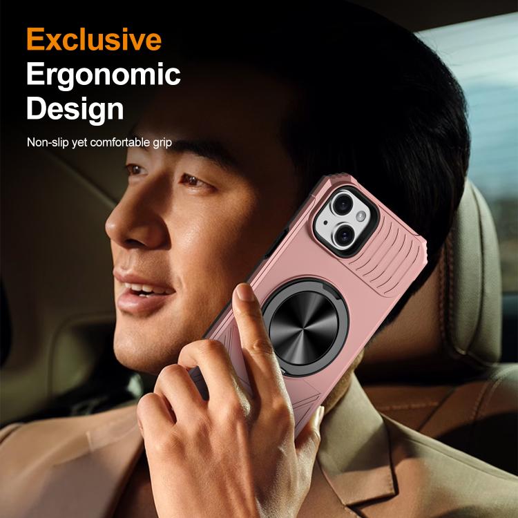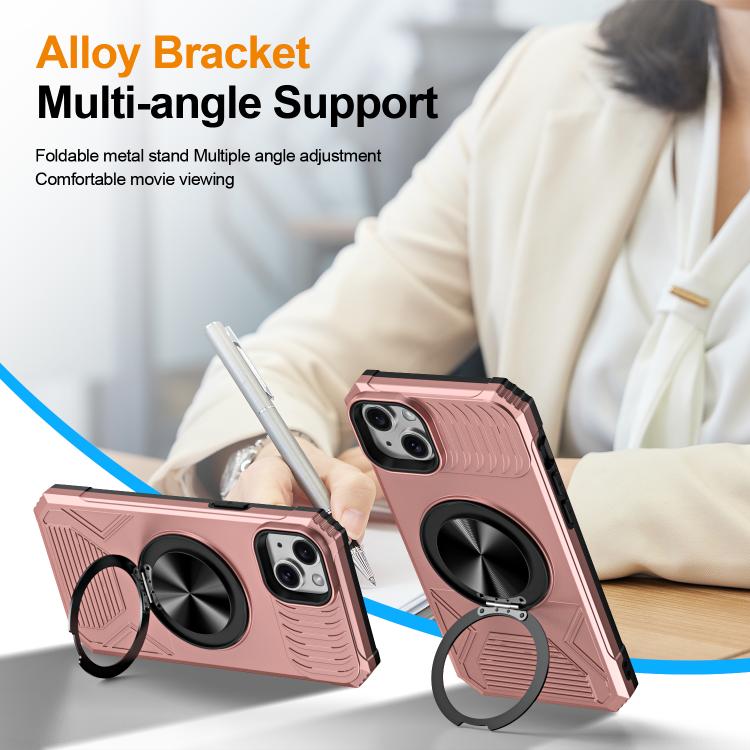 For iPhone 15 Alloy Rotating Holder MagSafe Shockproof Phone Case(Rose Gold)