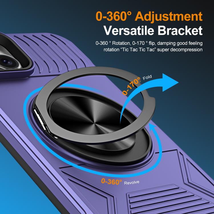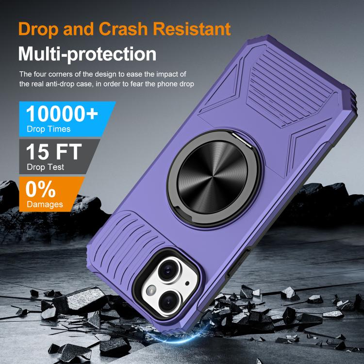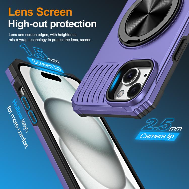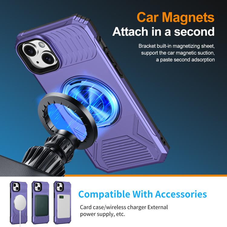 For iPhone 15 Alloy Rotating Holder MagSafe Shockproof Phone Case(Violet)